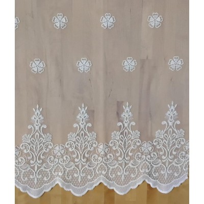 66358 TUL BORDADO AMBOS LADOS ENGUIN (01) 1.50 MTS. POLIESTER 100% NATURAL Venta en piezas de 15.00 M