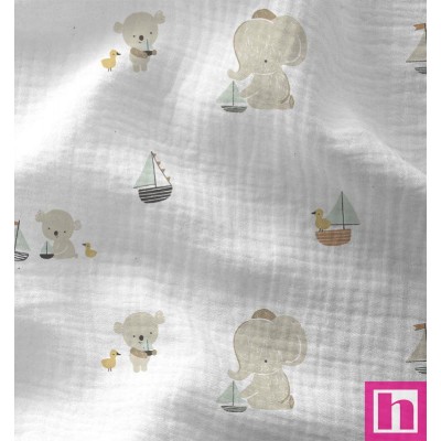 67131 DOBLE GASA ESTAMPADA DELPHINE (02) 135 CM. 130 GR/M2. ALGODON 100% BLANCO/GRIS Venta en piezas de 10.00 M