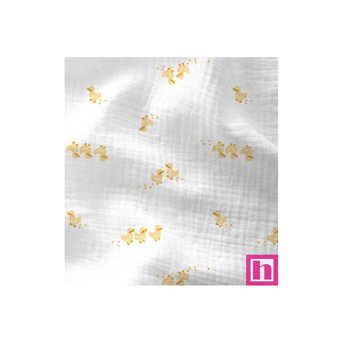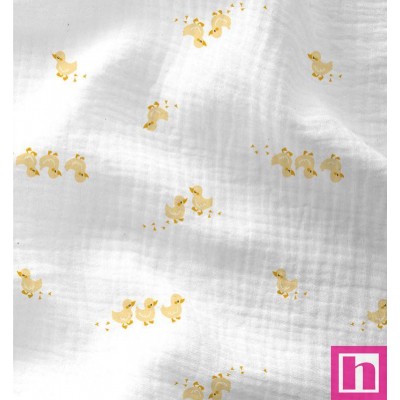 67132 DOBLE GASA ESTAMPADA CINDY (01) 135 CM. 130 GR/M2. ALGODON 100% BLANCO/AMARILLO Venta en piezas de 10.00 M