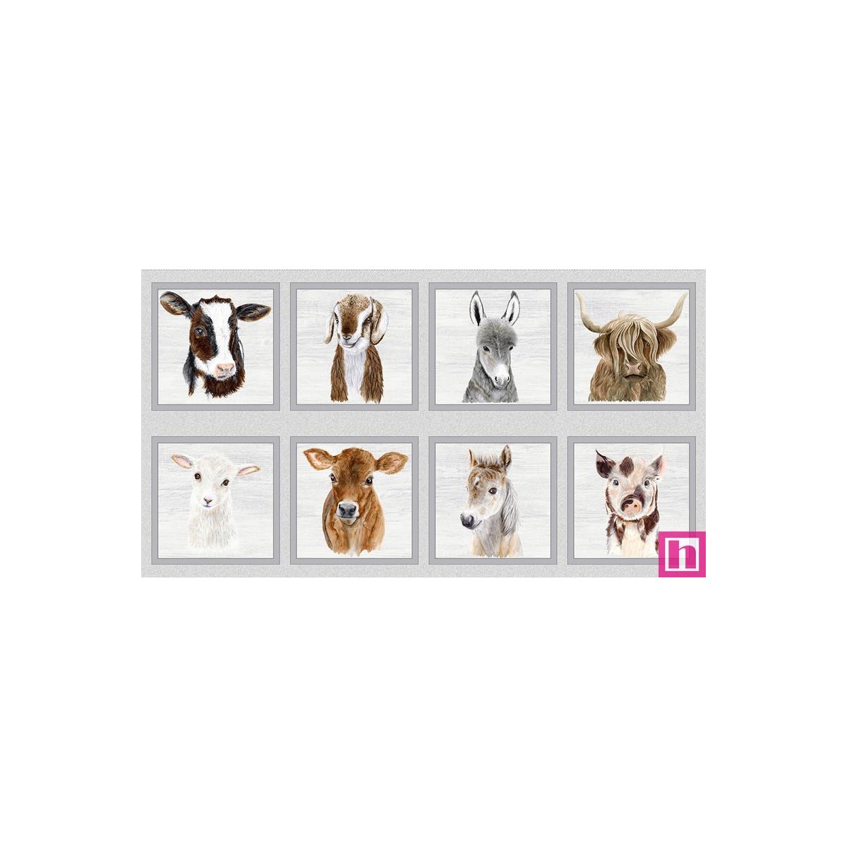 P140-4389-90 PATCH. AMERICANO LITTLE SEEDLINGS FARM (04) PANEL 60X110 CM. ALGODON 100% GRIS Venta en piezas de 7.00 M