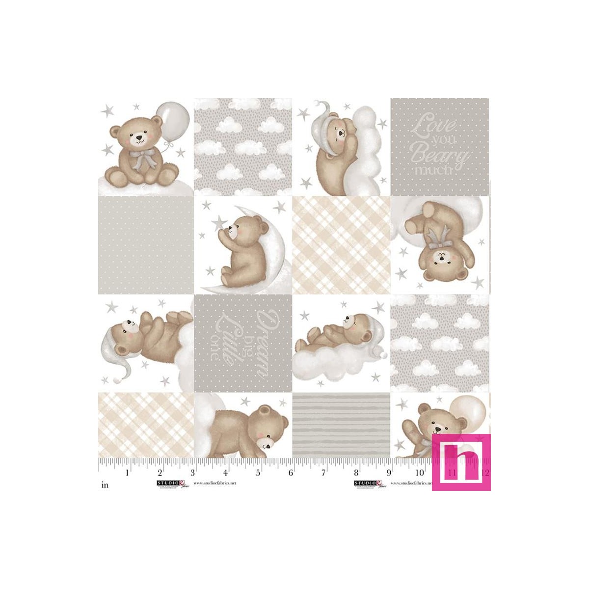 P140-8518-94 PATCH. AMERICANO SLEEPY TEDDY (02) 110 CM. ALGODON 100% BLANCO/GRIS Venta en piezas de 7.00 M