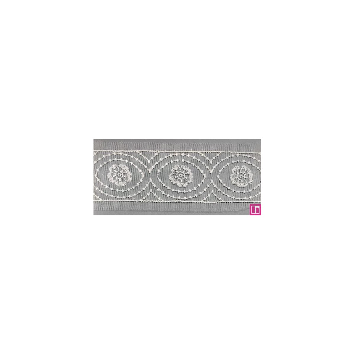 67154 ENTREDOS TUL BORDADO HELINA 43 MM. POLIESTER 100% NATURAL Venta en piezas de 13.00 M