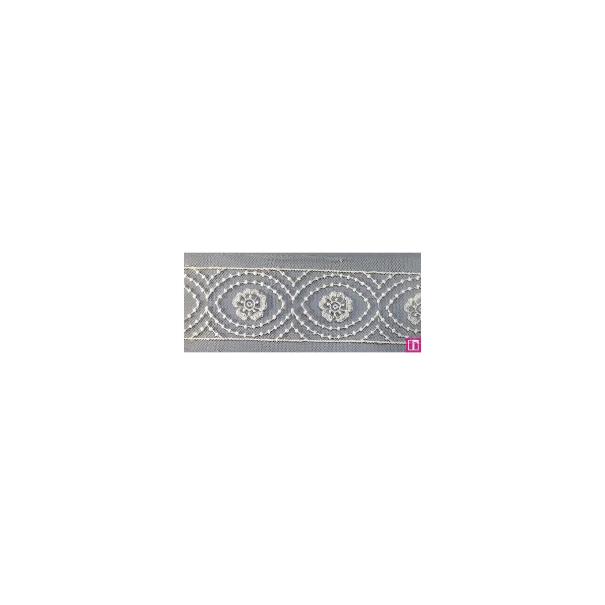 67159 ENTREDOS TUL BORDADO HELINA 43 MM. POLIESTER 100% MARFIL Venta en piezas de 13.00 M