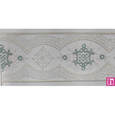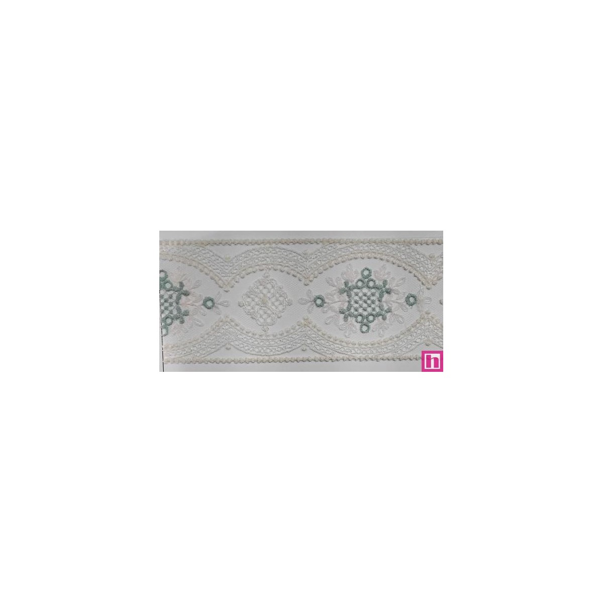 67177 ENTREDOS TUL BORDADO CLARA 60 MM. POLIESTER 101% MARFIL/VERDE Venta en piezas de 13.00 M