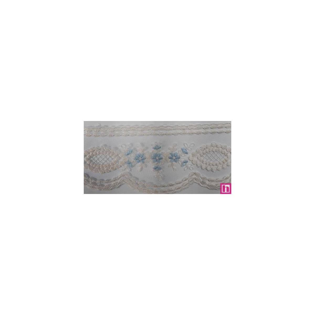 67182 PUNTILLA TUL BORDADO BEATRIZ 72 MM. POLIESTER 103% MARFIL/CELESTE Venta en piezas de 13.00 M