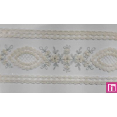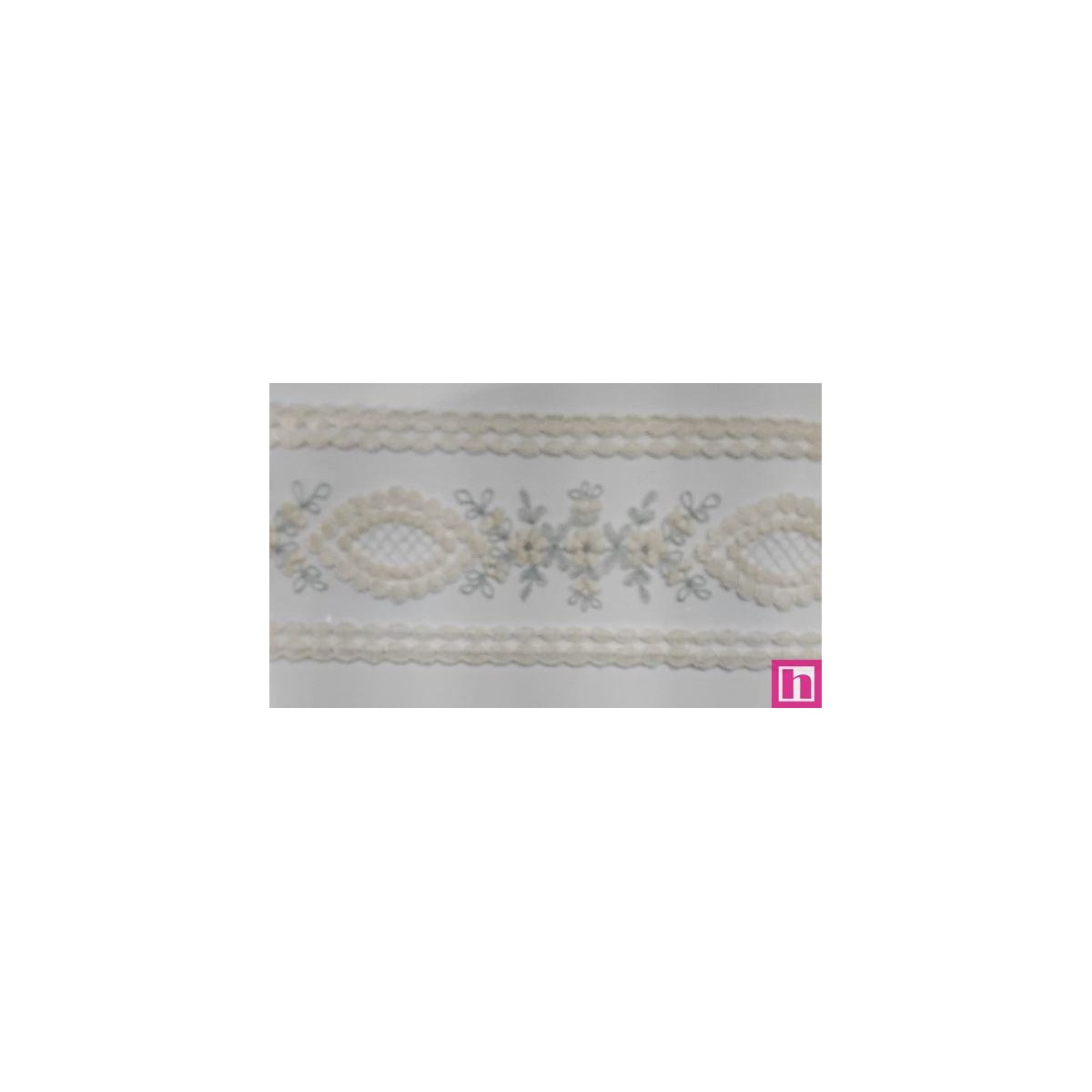 67183 ENTREDOS TUL BORDADO BEATRIZ 60 MM. POLIESTER 103% MARFIL/VERDE Venta en piezas de 13.00 M