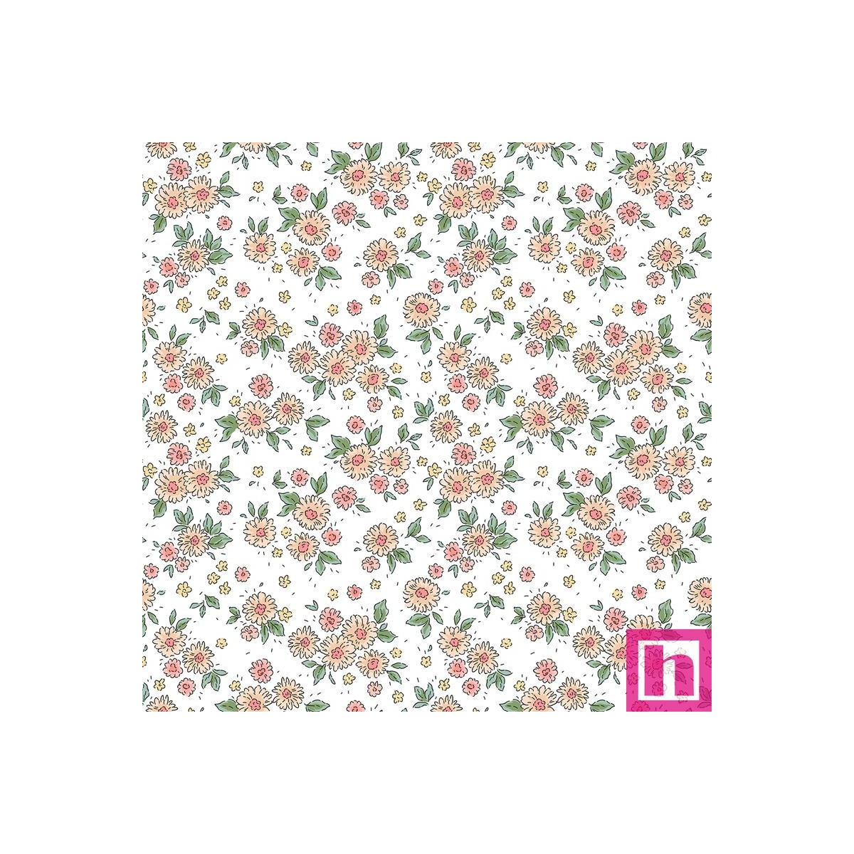 67198 TEJIDO ESTAMPADO LIBERTY CRETA (01) 1.40 M. 110 GR/M2. ALGODON 100% BLANCO/MELOCOTON Venta en piezas de 10.00 M