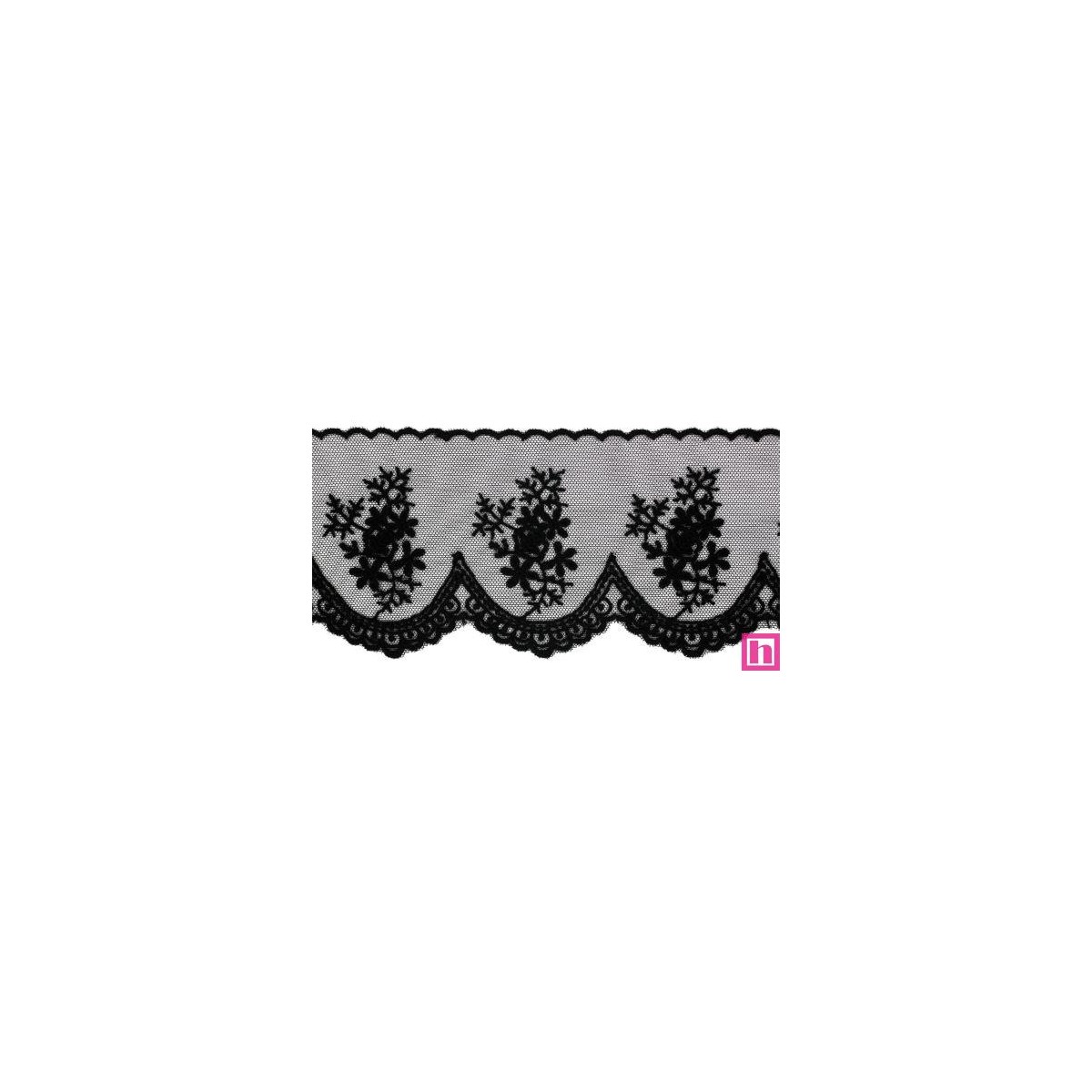 725354-0002 PUNTILLA TUL BORDADO ERIKA 85 MM. POLIESTER 50%-ALGODON 50% NEGRO Venta en piezas de 14.60 M