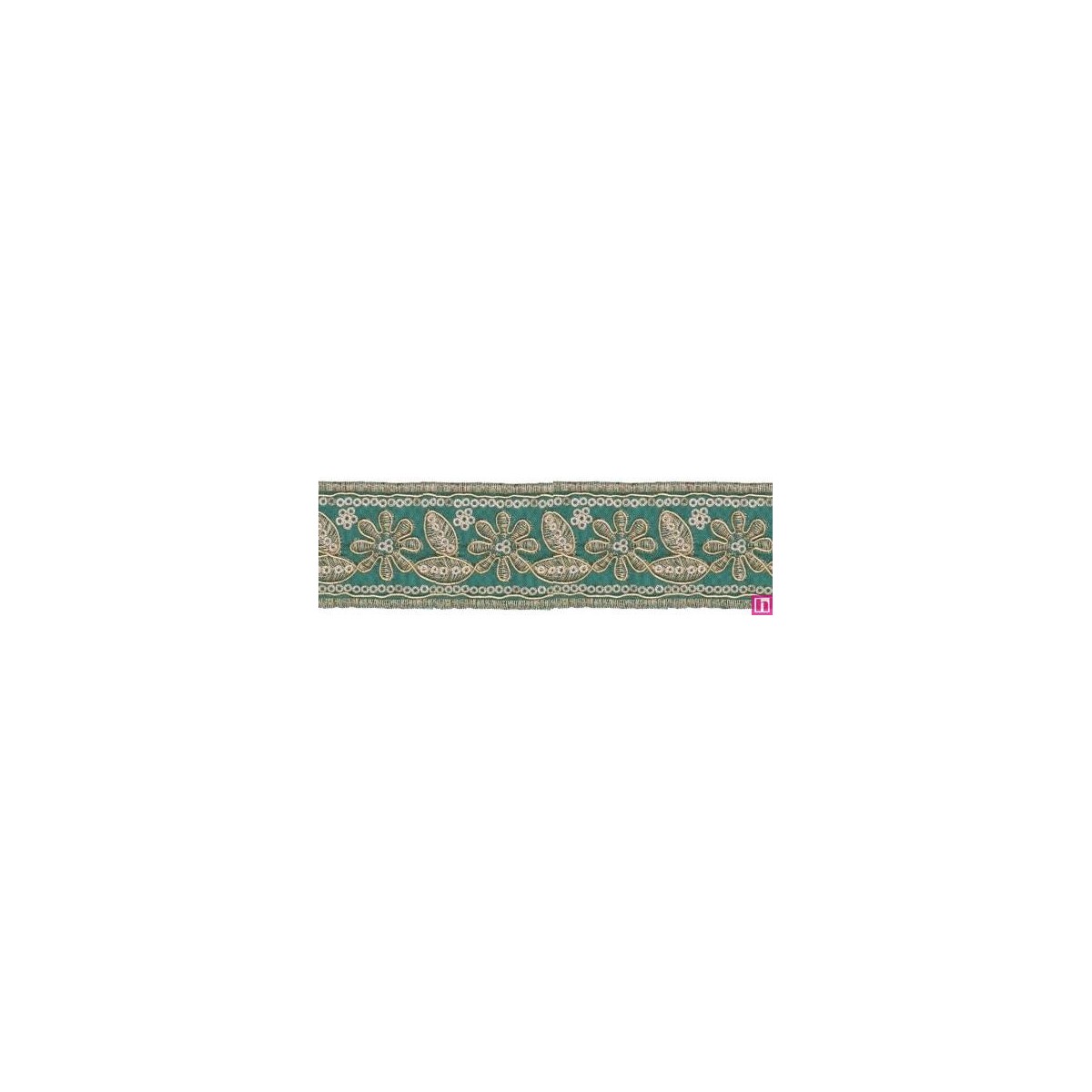 981254-0013 GALON FANTASIA ADONIS 45 MM. POLIESTER+PET VERDE/DORADO Venta en piezas de 9.30 M