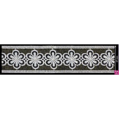 137305-102 GALON GUIPUR FANTASIA ABIDEMI 37 MM. POLIESTER + PET+CRISTAL MARFIL/NEGRO Venta en piezas de 9.10 M