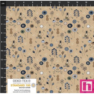 P137-4504-086 PATCH.AMERICANO BOBBINS AND BLOOMS (07) 110 CM. ALGODON 100% TAUPE Venta en piezas de 6.00 M