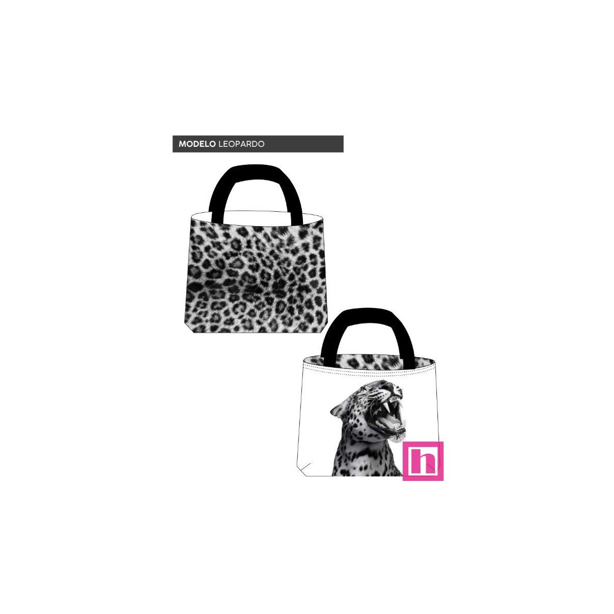 67421 TOTE BAGS LEOPARDO -REVERSIBLE Y REPELENTE AL AGUA (01) 45X50 CMS. POLIESTER 100% BLANCO/NEGRO Venta en piezas de 1.00 U