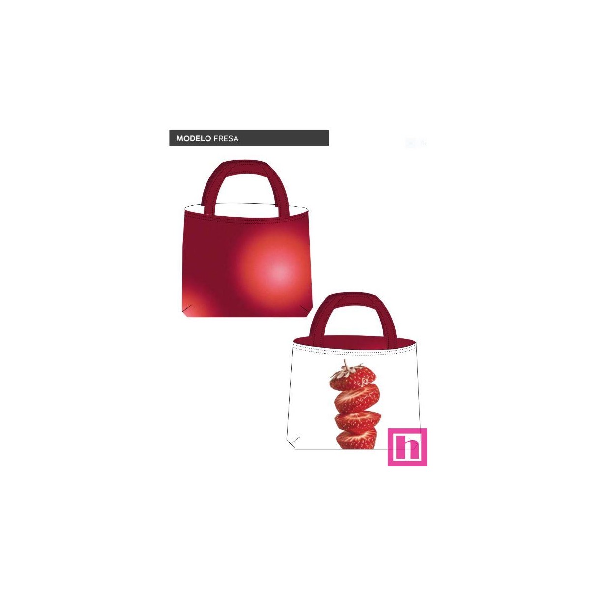 67429 TOTE BAGS FRESA - REVERSIBLE Y REPELENTE AL AGUA (09) 45X50 CMS. POLIESTER 100% BLANCO/ROJO Venta en piezas de 1.00 U