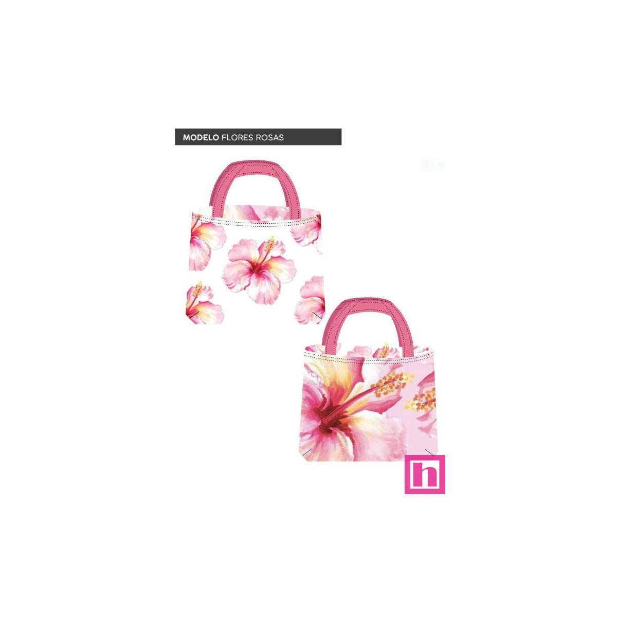 67433 TOTE BAGS FLORES ROSAS - REVERSIBLE Y REPELENTE AL AGUA (13) 45X50 CMS. POLIESTER 100% BLANCO/ROSA Venta en piezas de 1.0