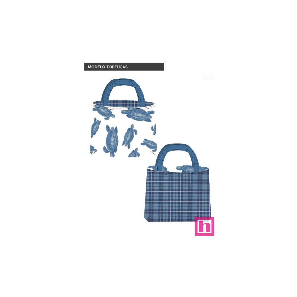67439 TOTE BAGS TORTUGAS - REVERSIBLE Y REPELENTE AL AGUA (19) 45X50 CMS. POLIESTER 100% BLANCO/AZUL Venta en piezas de 1.00 U