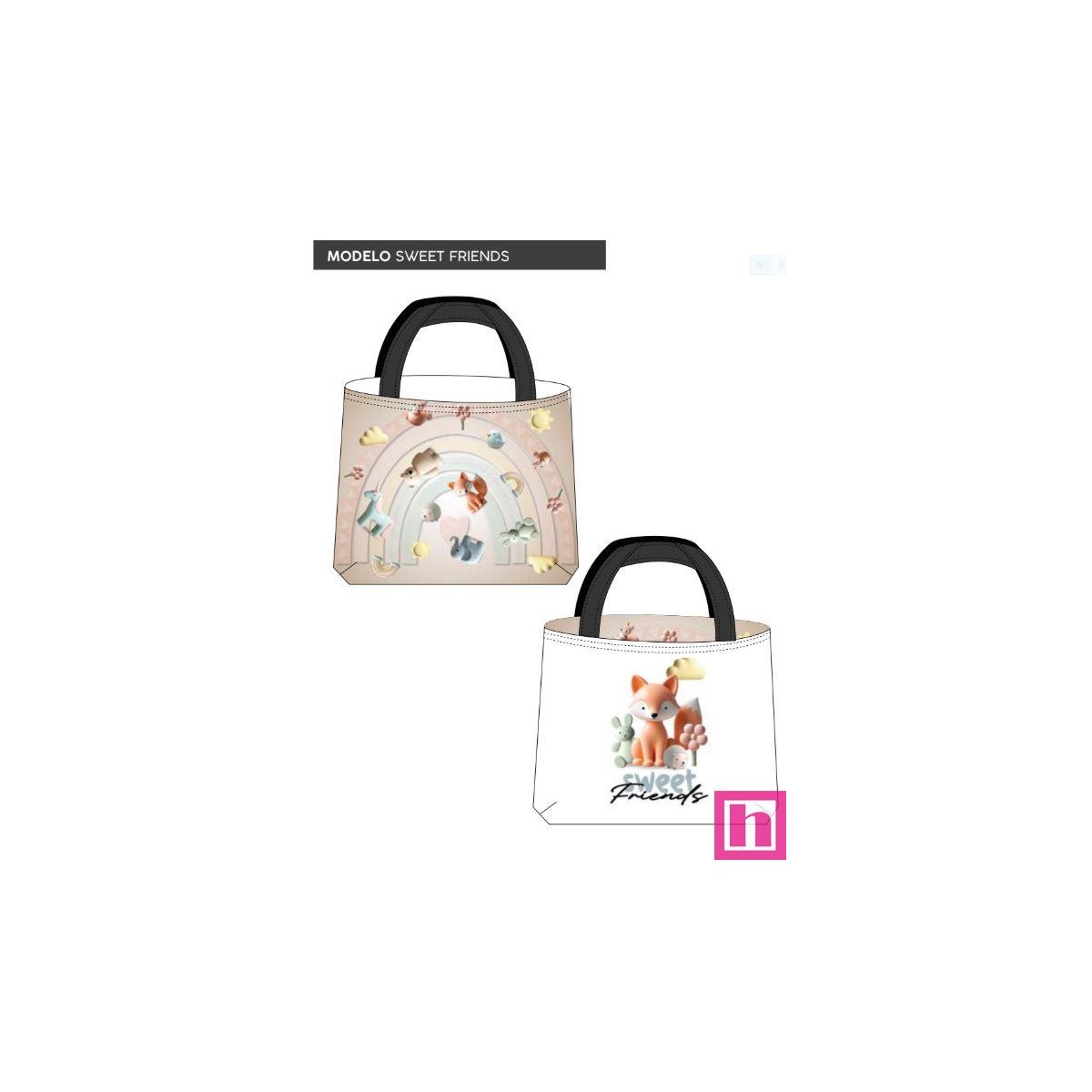 67445 TOTE BAGS SWEET FRIENDS - REVERSIBLE REPELENTE AL AGUA (25) 45X50 CMS. POLIESTER 100% BLANCO/MULTI Venta en piezas de 1.0