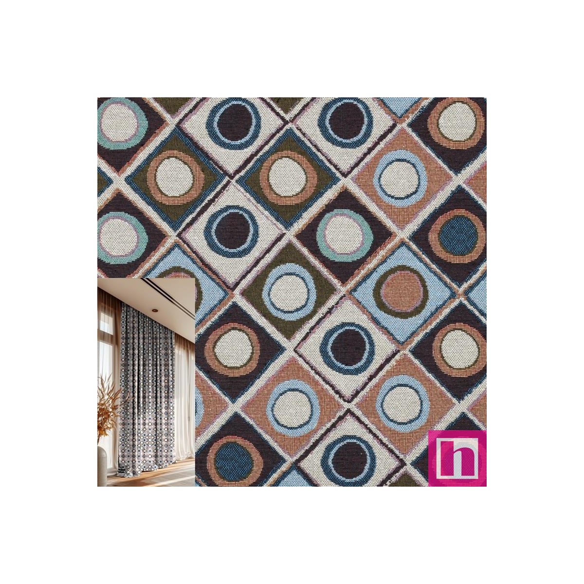 P94-3552-001 TEJIDO GOBELINO RETRO (03) 150 CM. 320 GR/M2. POLIESTER 80%-ALGODON 20% MULTI Venta en piezas de 6.00 M