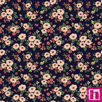 67468 TEJIDO ESTAMPADO LIBERTY LYANA (02) 1.40 M. 110 GR/M2. ALGODON 100% NEGRO Venta en piezas de 10.00 M