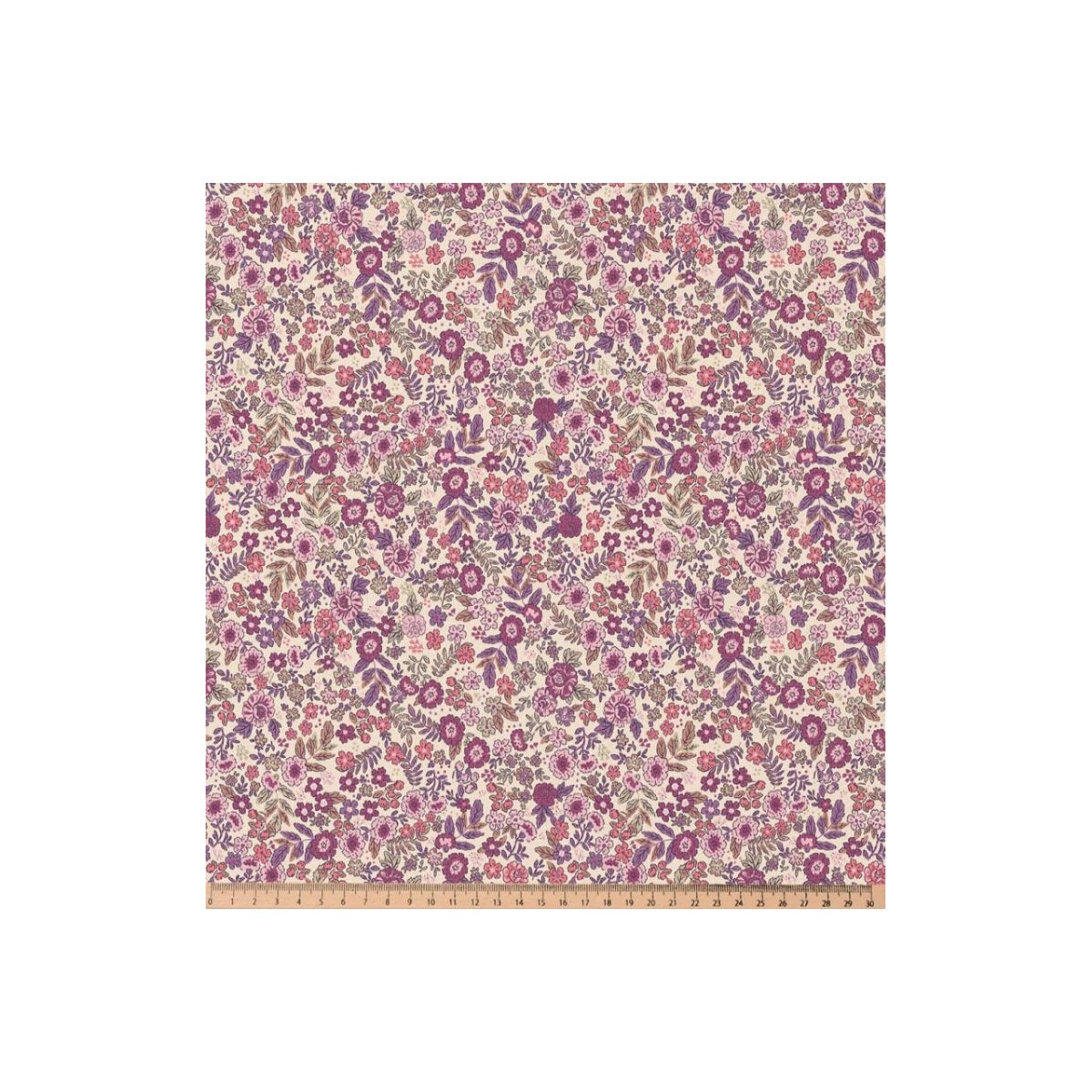 67659 TEJIDO ESTAMPADO SARAH (02) 1.50 M. 115 GR/M2. ALGODON 100% CREMA/VIOLETA Venta en piezas de 10.00 M