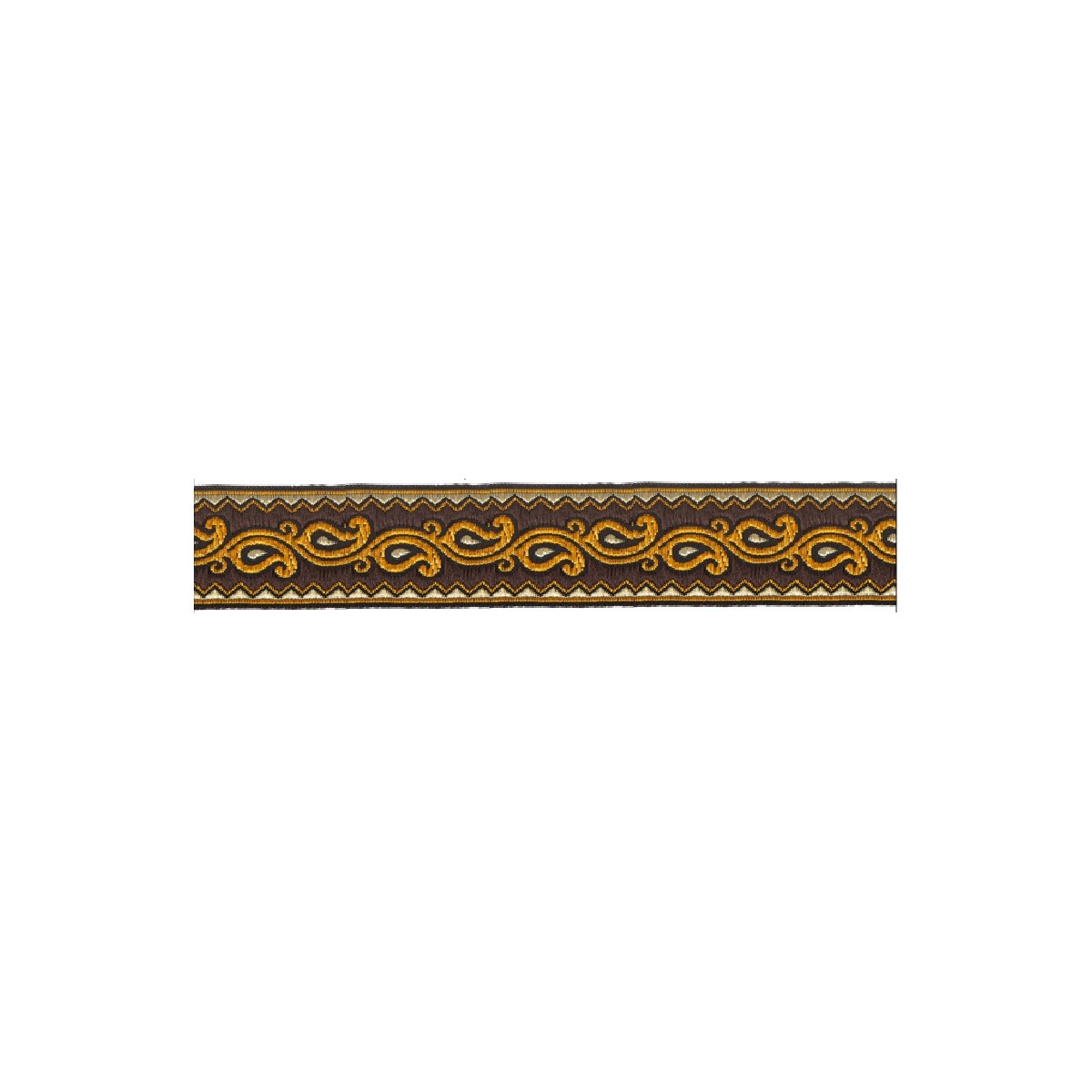 606045-25 CINTA JACQUARD ALIM 33 MM. POLIESTER 100% MARRON/DORADO Venta en piezas de 9.00 M