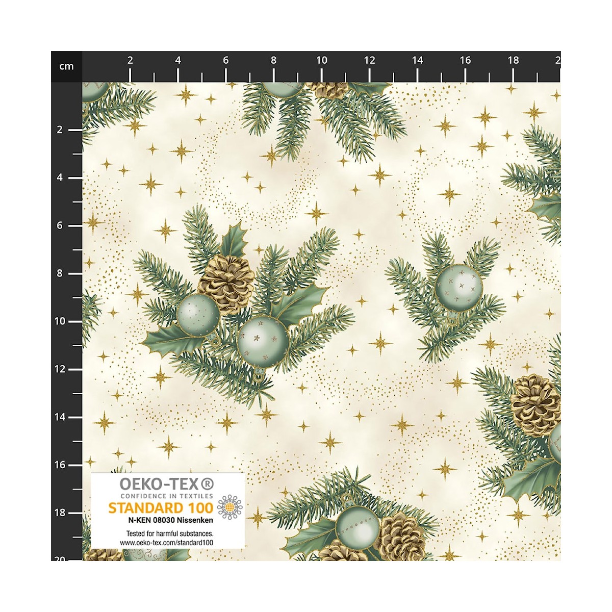 4593-011 PATCH.AMERICANO CHRISTMAS TIME (11) 110 CM. ALGODON 100% CREMA/EUCALIPTO/DORADO METALLIC Venta en piezas de 6.00 M