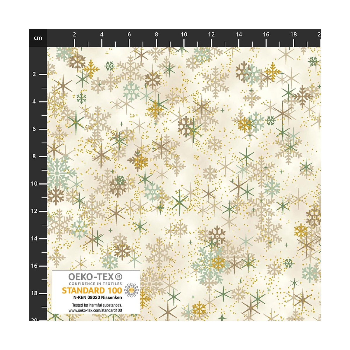 4593-013 PATCH.AMERICANO CHRISTMAS TIME (15) 110 CM. ALGODON 100% CREMA/EUCALIPTO/DORADO METALLIC Venta en piezas de 6.00 M
