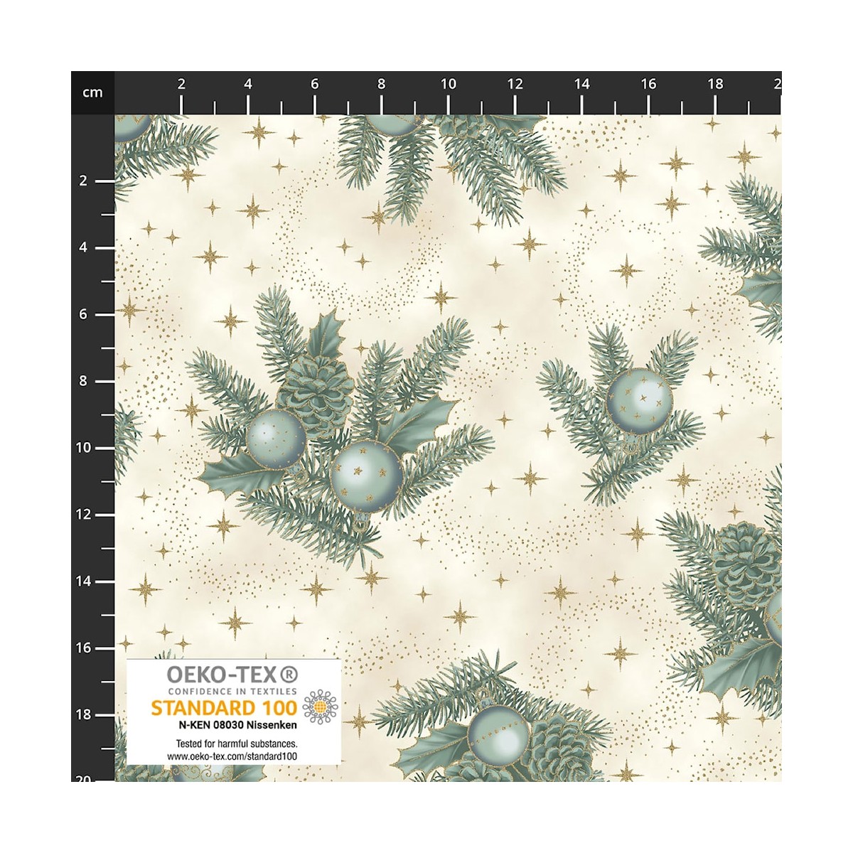 4593-016 PATCH.AMERICANO CHRISTMAS TIME (16) 110 CM. ALGODON 100% CREMA/AZUL/DORADO METALLIC Venta en piezas de 6.00 M