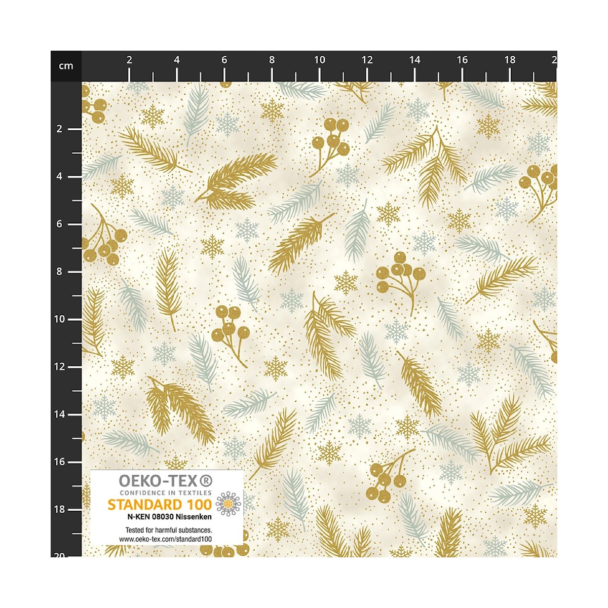 4593-019 PATCH.AMERICANO CHRISTMAS TIME (18) 110 CM. ALGODON 100% CREMA/AZUL/DORADO METALLIC Venta en piezas de 6.00 M