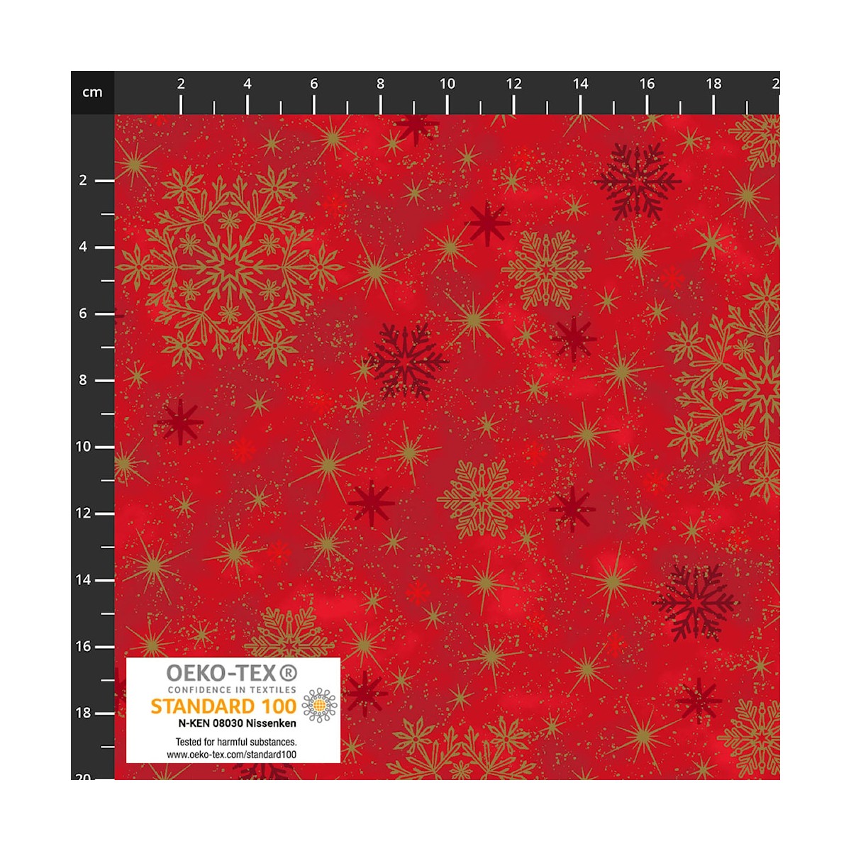 4593-410 PATCH.AMERICANO SNOW CRYSTALS (12) 110 CM. ALGODON 100% ROJO/DORADO METALLIC Venta en piezas de 6.00 M