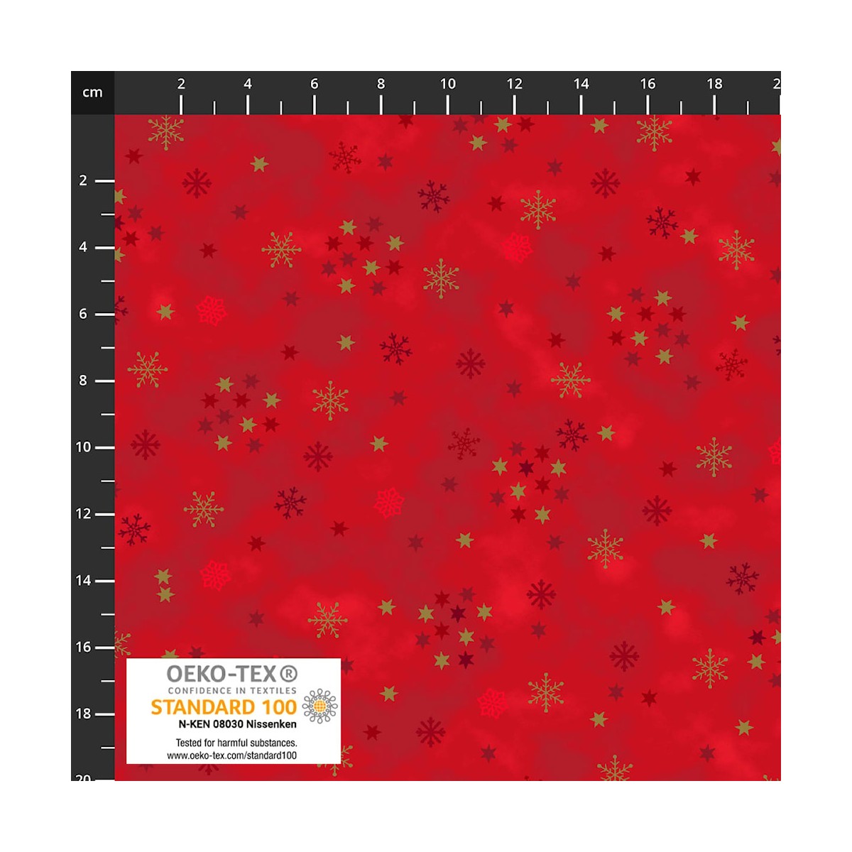 4593-413 PATCH.AMERICANO SNOW CRYSTALS (10) 110 CM. ALGODON 100% ROJO/DORADO METALLIC Venta en piezas de 6.00 M