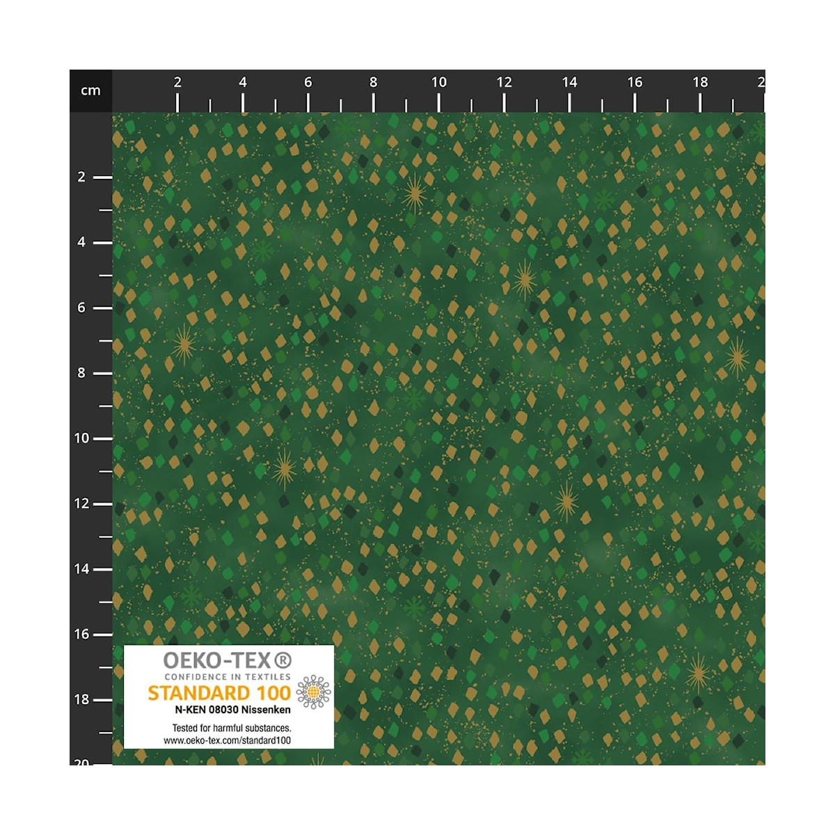 4593-803 PATCH.AMERICANO SNOW CRYSTALS (36) 110 CM. ALGODON 100% VERDE/DORADO METALLIC Venta en piezas de 6.00 M