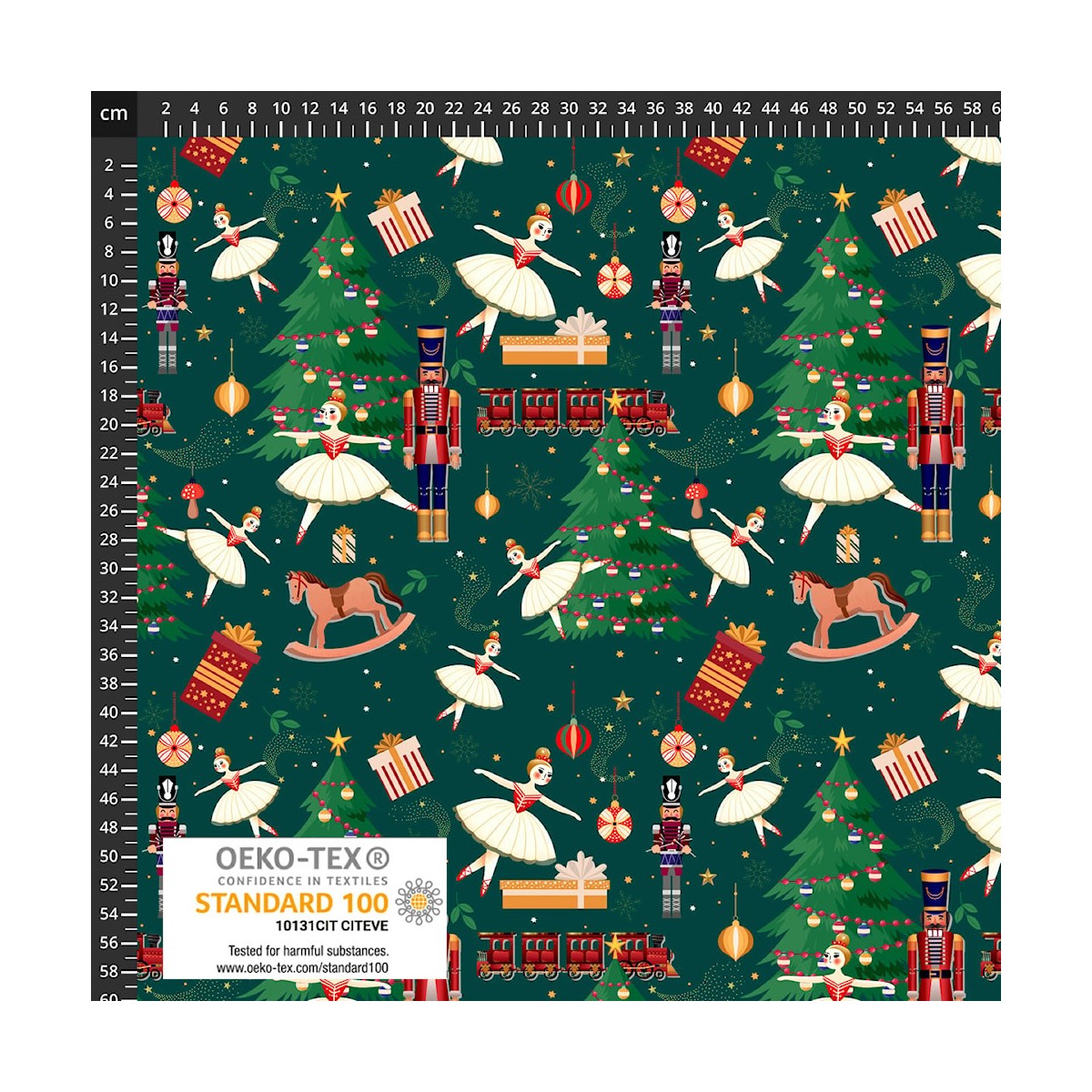 P37-4504-168 PATCH.AMERICANO CHRISTMAS BALLET (02) 110 CM. ALGODON 100% VERDE Venta en piezas de 6.00 M