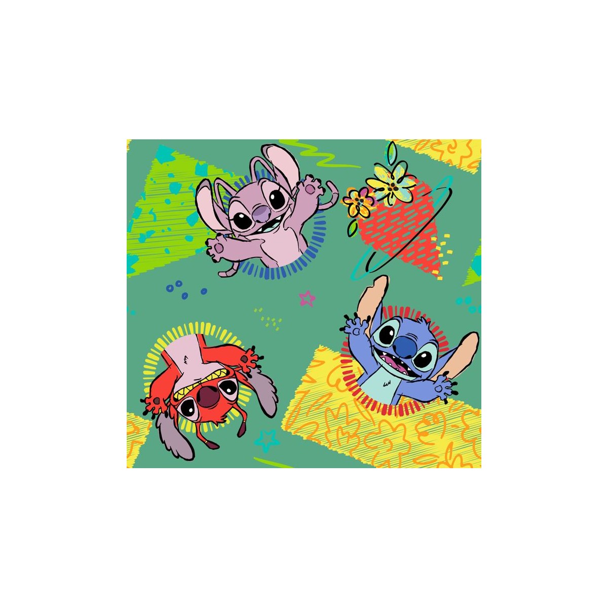 67907 TEJIDO ESTAMPADO STITCH (00) 1.40 M. 130 GR/M2 ALGODON 100% VERDE Venta en piezas de 6.00 M