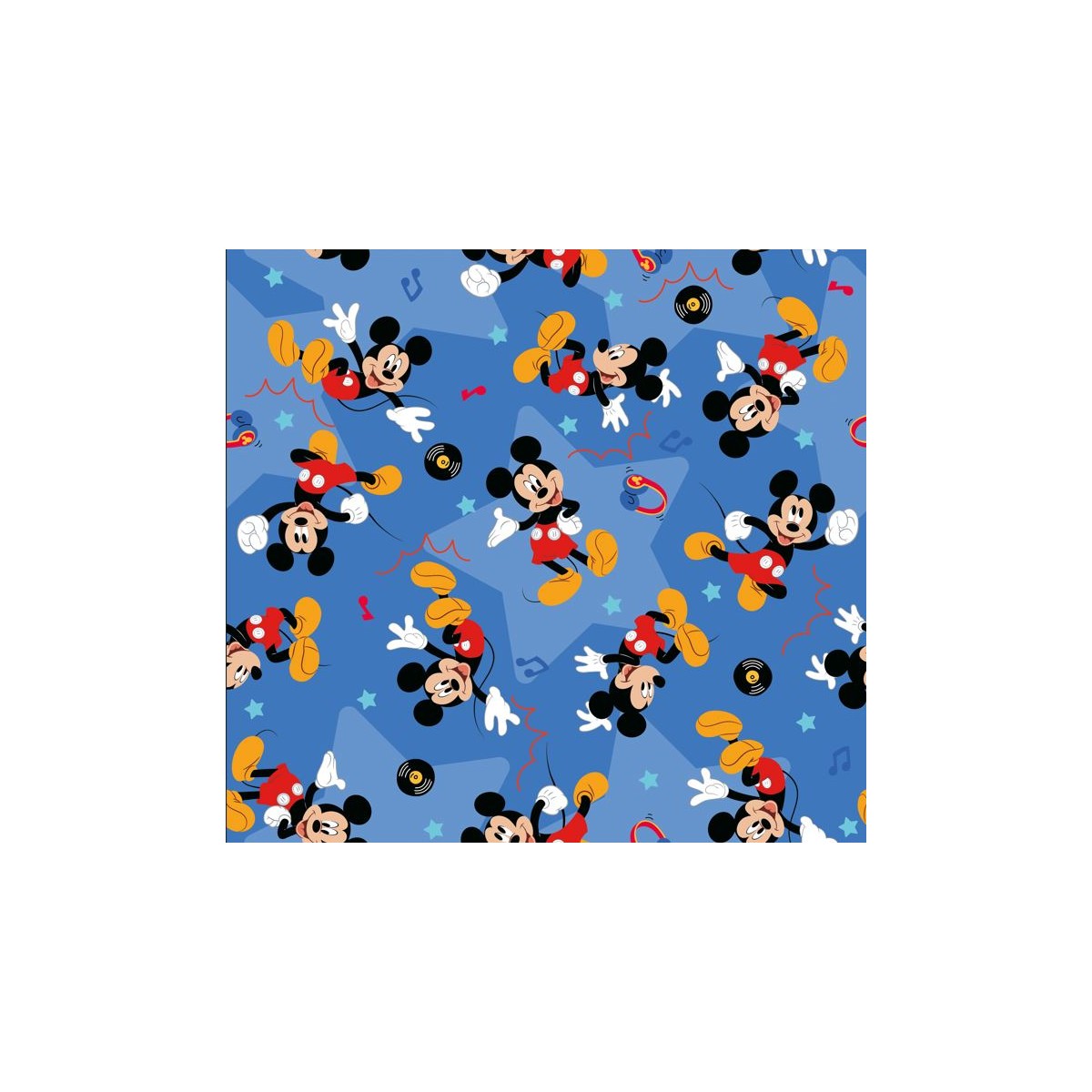 67909 TEJIDO ESTAMPADO MICKEY PARTY (00) 1.40 M. 130 GR/M2 ALGODON 100% AZUL Venta en piezas de 6.00 M