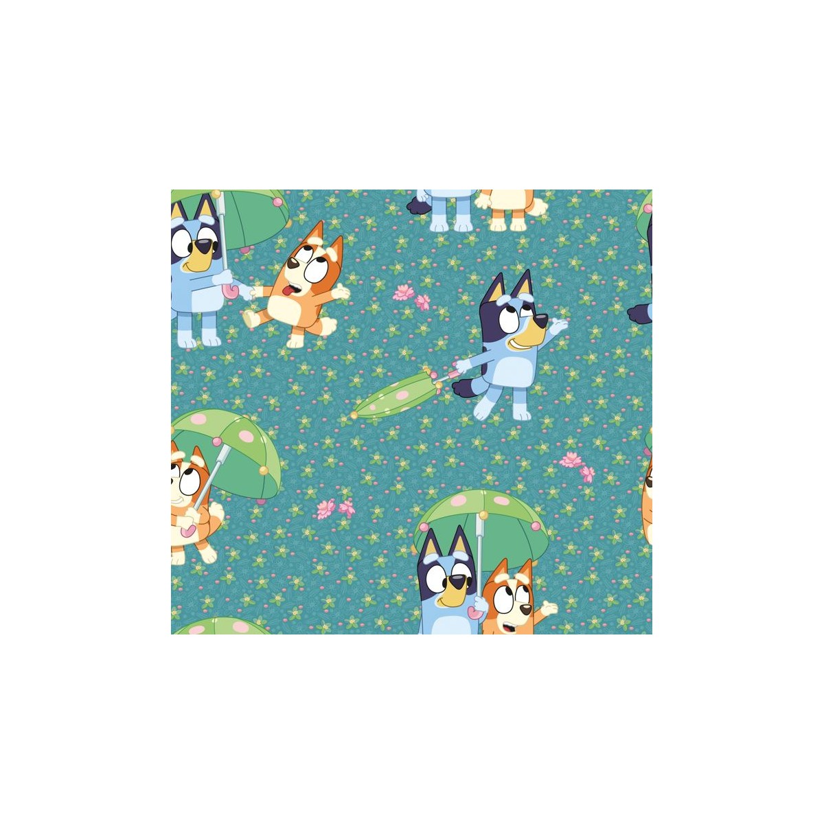67919 TEJIDO ESTAMPADO BLUEY AND FRIENDS (00) 1.40 M. 130 GR/M2 ALGODON 100% VERDE Venta en piezas de 6.00 M