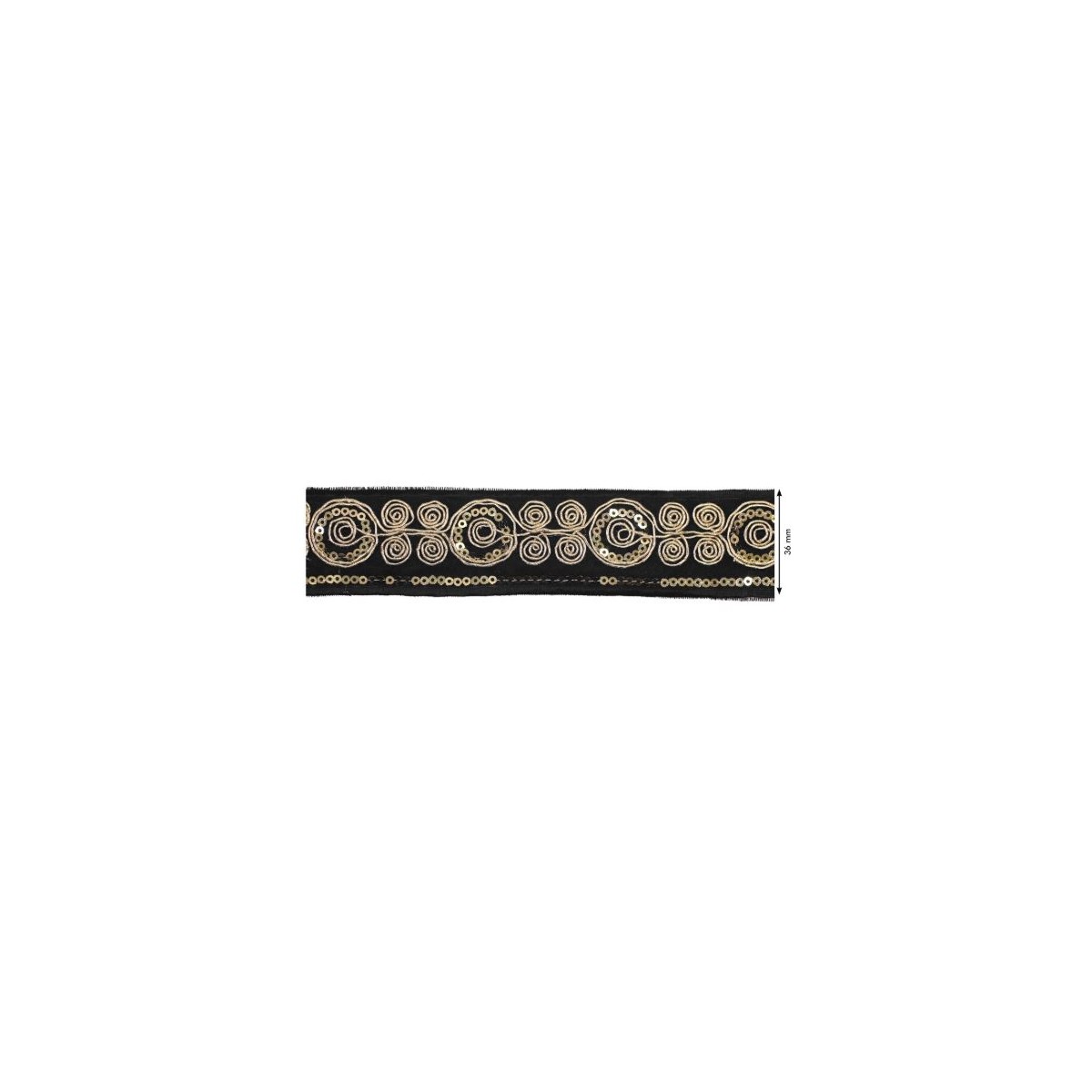 131630-02 GALON FANTASIA ADITI 36 MM. POLIESTER+POLIESTILENO NEGRO/DORADO Venta en piezas de 9.10 M