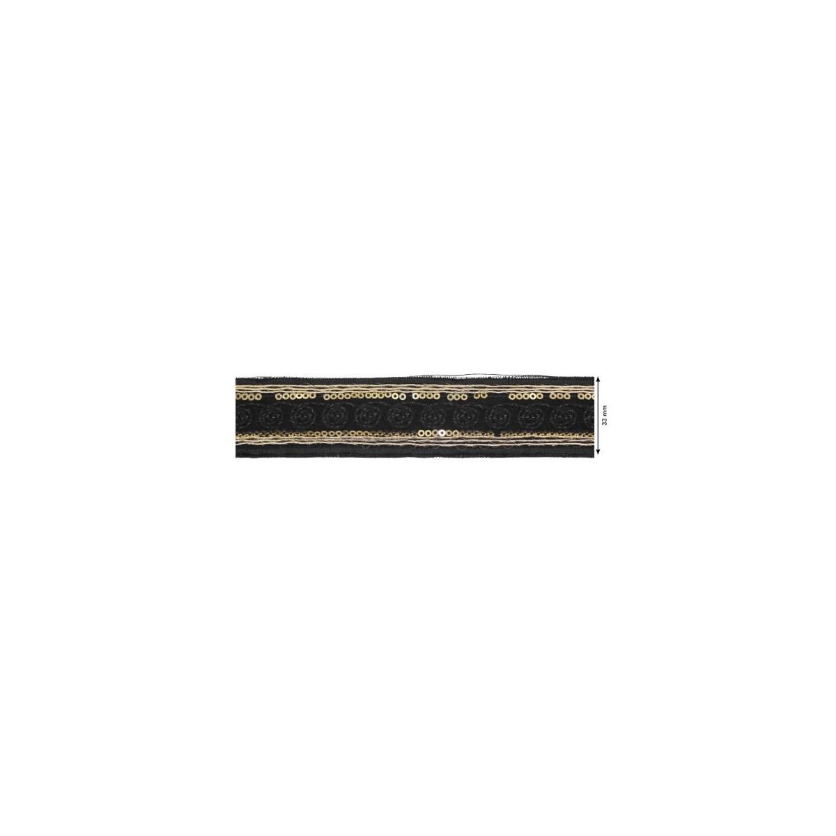 131632-02 GALON FANTASIA ADITI 33 MM. POLIESTER+POLIESTILENO NEGRO/DORADO Venta en piezas de 9.10 M