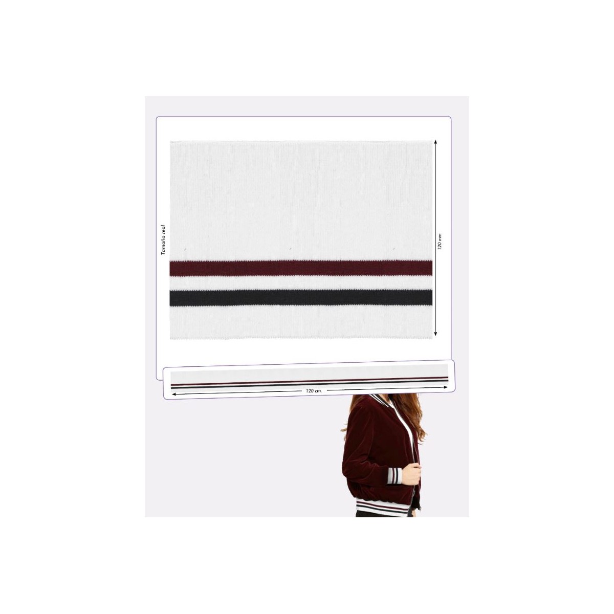 130203-120-0126 PUÑO ELASTICO FANTASIA 120 MM. ELASTICO 120 CM BLANCO Venta en piezas de 4.00 U