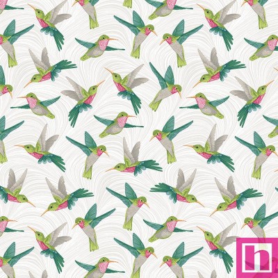 P133-13218-09 PATCH.AMERICANO HUMMINGBIRDS AND HONEYSUCKLE (15) 110 CM. ALGODON 100% BLANCO Venta en piezas de 6.80 M