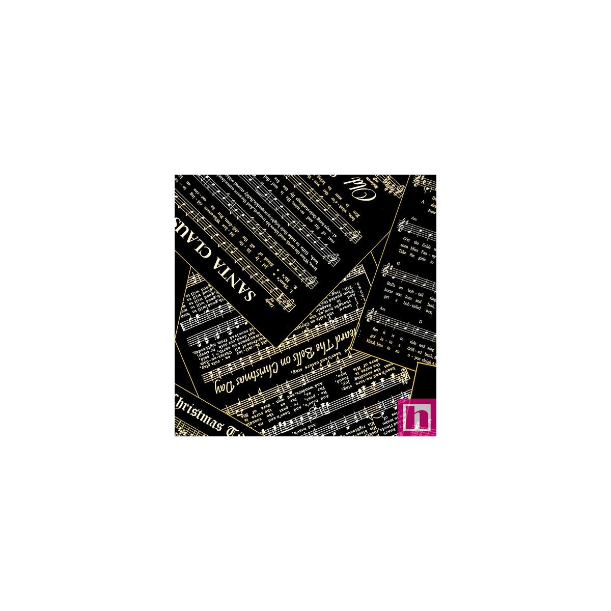 P133-14023M-12 PATCH.AMERICANO CHRISTMAS MUSICAL (03) 110 CM. ALGODON 100% NEGRO/METALLIC Venta en piezas de 6.80 M