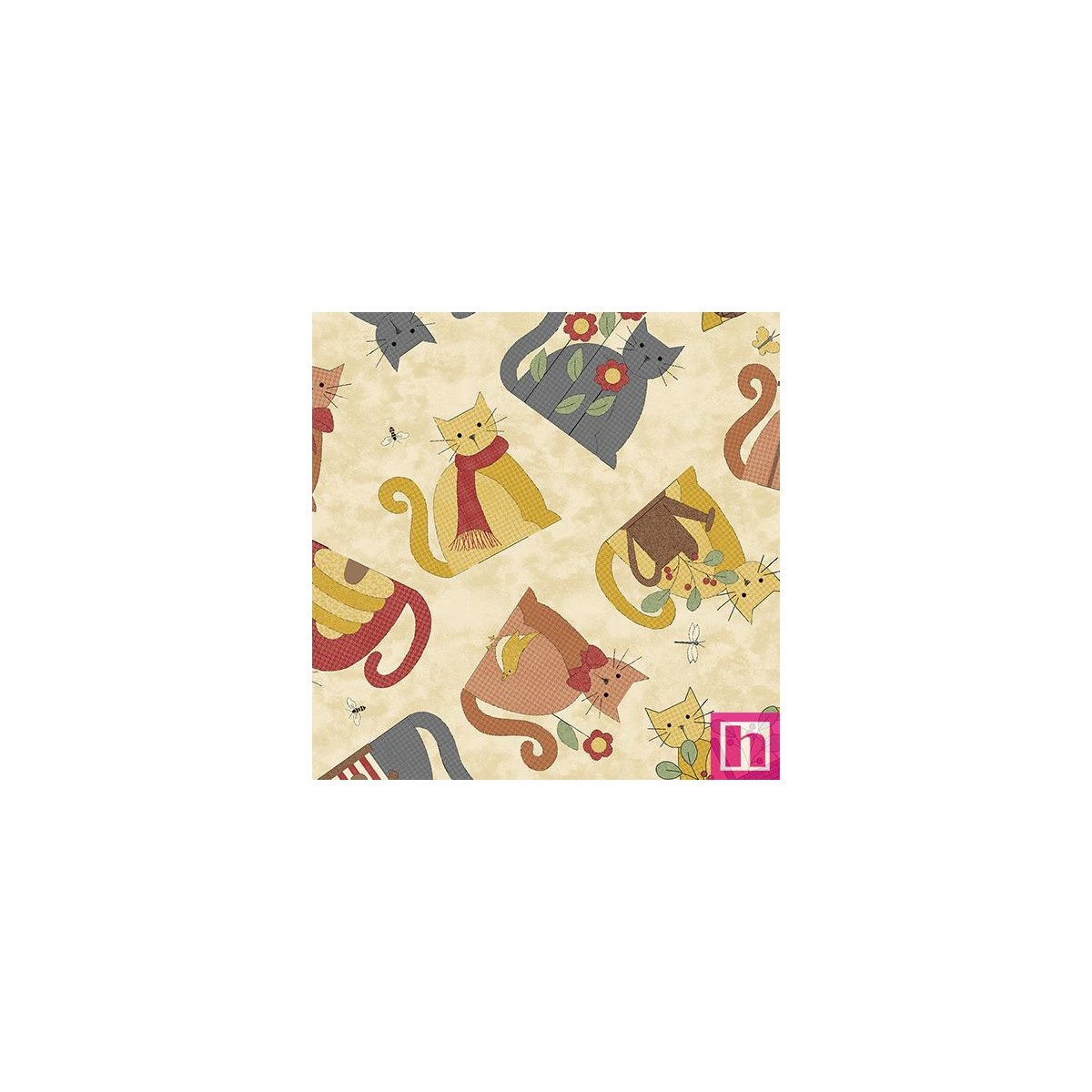 P133-16307-07 PATCH.AMERICANO WOOLY CATS (01) 110 CM. ALGODON 100% CREMA/MULTI Venta en piezas de 6.80 M