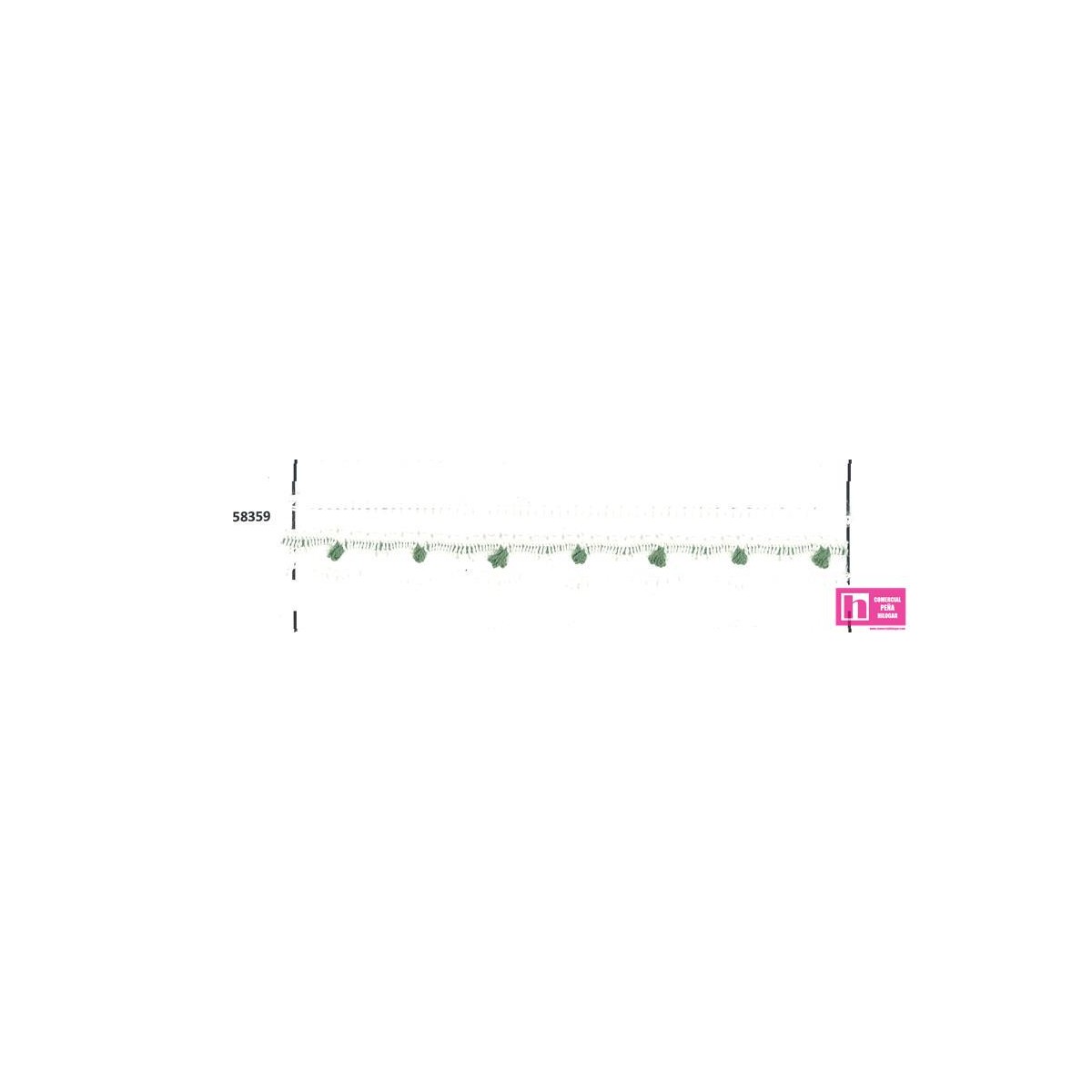 58359 MIMOSO PUNTILLA PASACINTAS BOLILLO 20 MM ACRILICO 100% MARFIL/VERDE Venta en piezas de 33.00 M