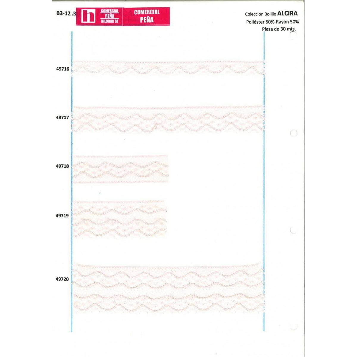 49719 ALCIRA PUNTILLA BOLILLO 30 MM. POLIESTER 50%-RAYON 50% ROSA Venta en piezas de 30.00 M