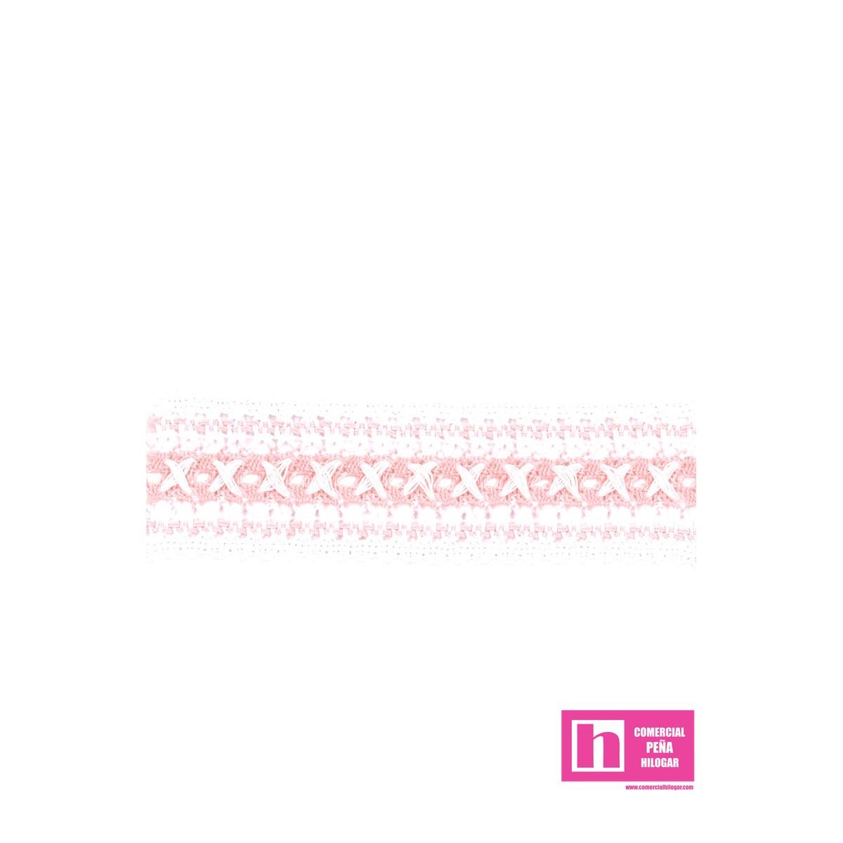 61513 ENTREDOS BOLILLO FABRICIO 40 MM. POLIESTER 100% BLANCO/ROSA Venta en piezas de 15.00 M