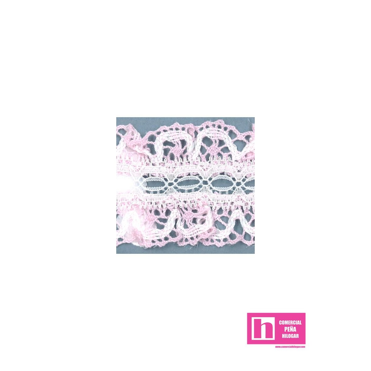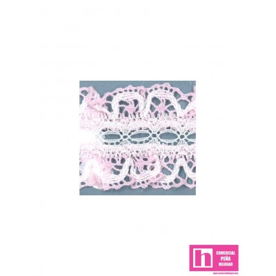 145359-11 GALON PASACINTAS BOLILLO FRUNCIDO FIAMA 40 MM. ALGODON 100% ROSA/BLANCO Venta en piezas de 25.00 M