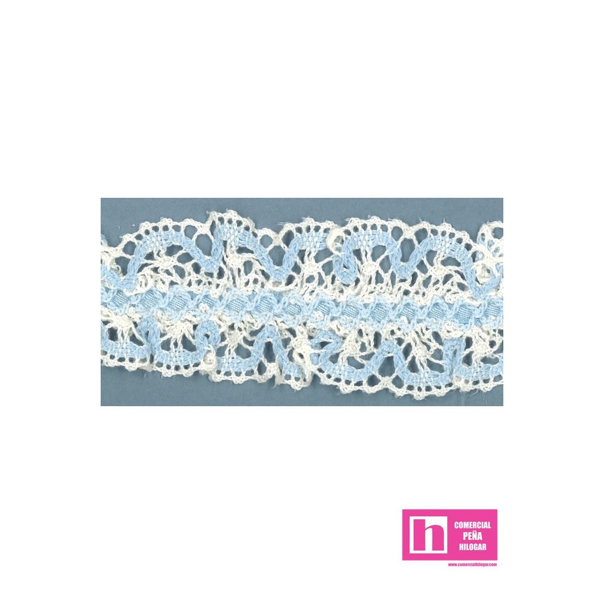 245318-2 GALON CINTA BOLILLO FRUNCIDO DEKA 35 MM. ALGODON 100% MARFIL/CELESTE Venta en piezas de 25.00 M