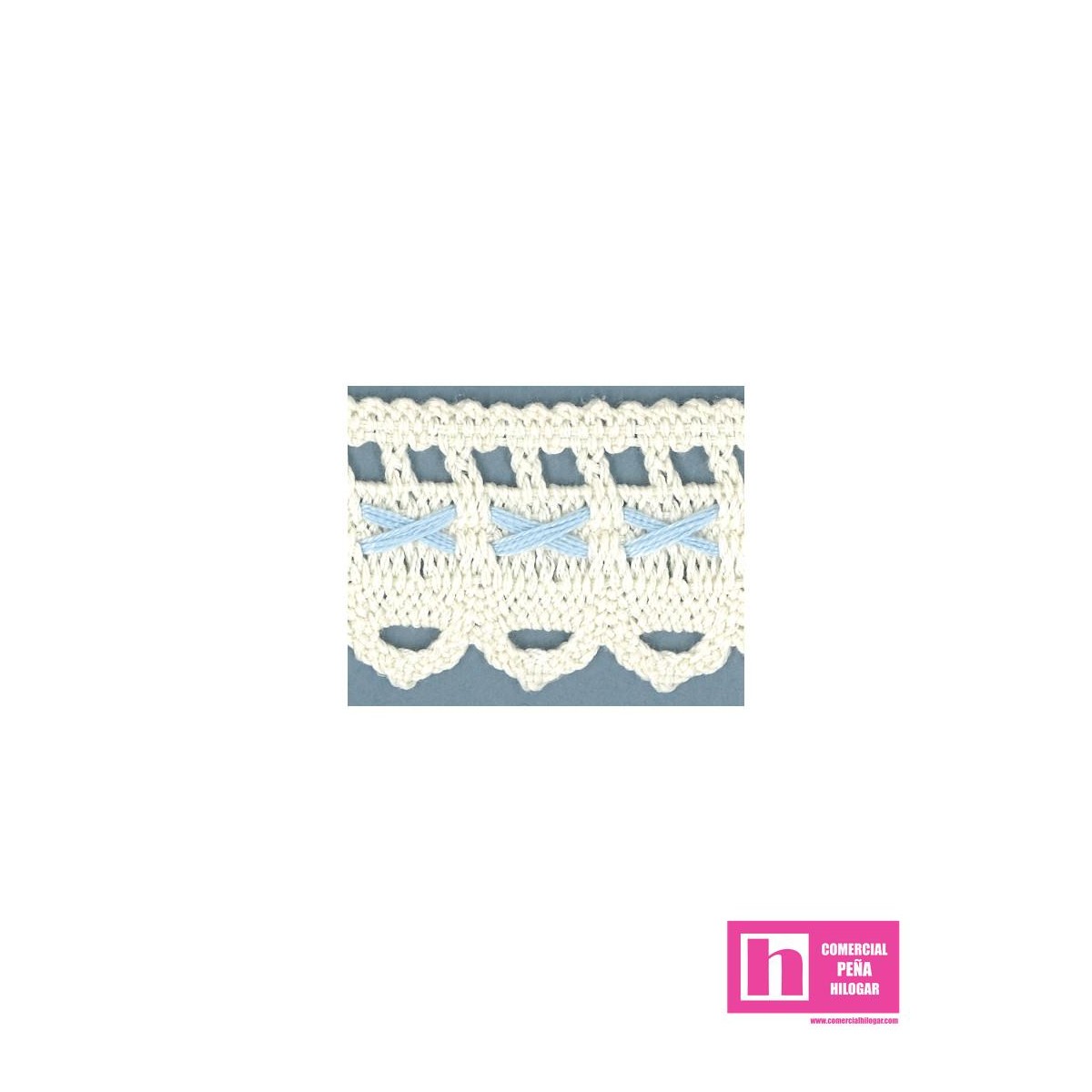 9608-4 PUNTILLA BOLILLO KAELA 35 MM. POLIESTER 100% MARFIL/CELESTE Venta en piezas de 25.00 M