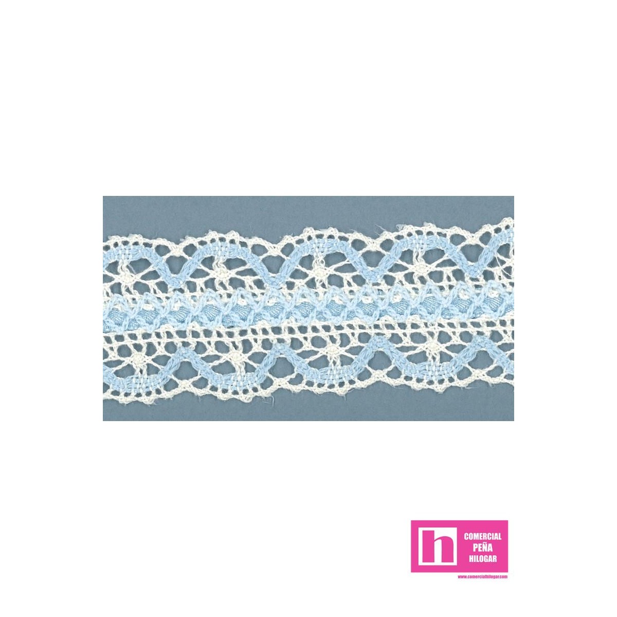 245372-2 GALON CINTA BOLILLO DEKA 35 MM. ALGODON 100% MARFIL/CELESTE Venta en piezas de 25.00 M