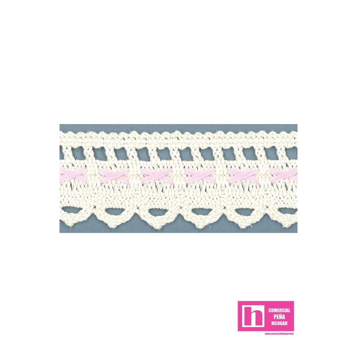 9608-5 PUNTILLA BOLILLO KAELA 35 MM. POLIESTER 100% MARFIL/ROSA Venta en piezas de 25.00 M