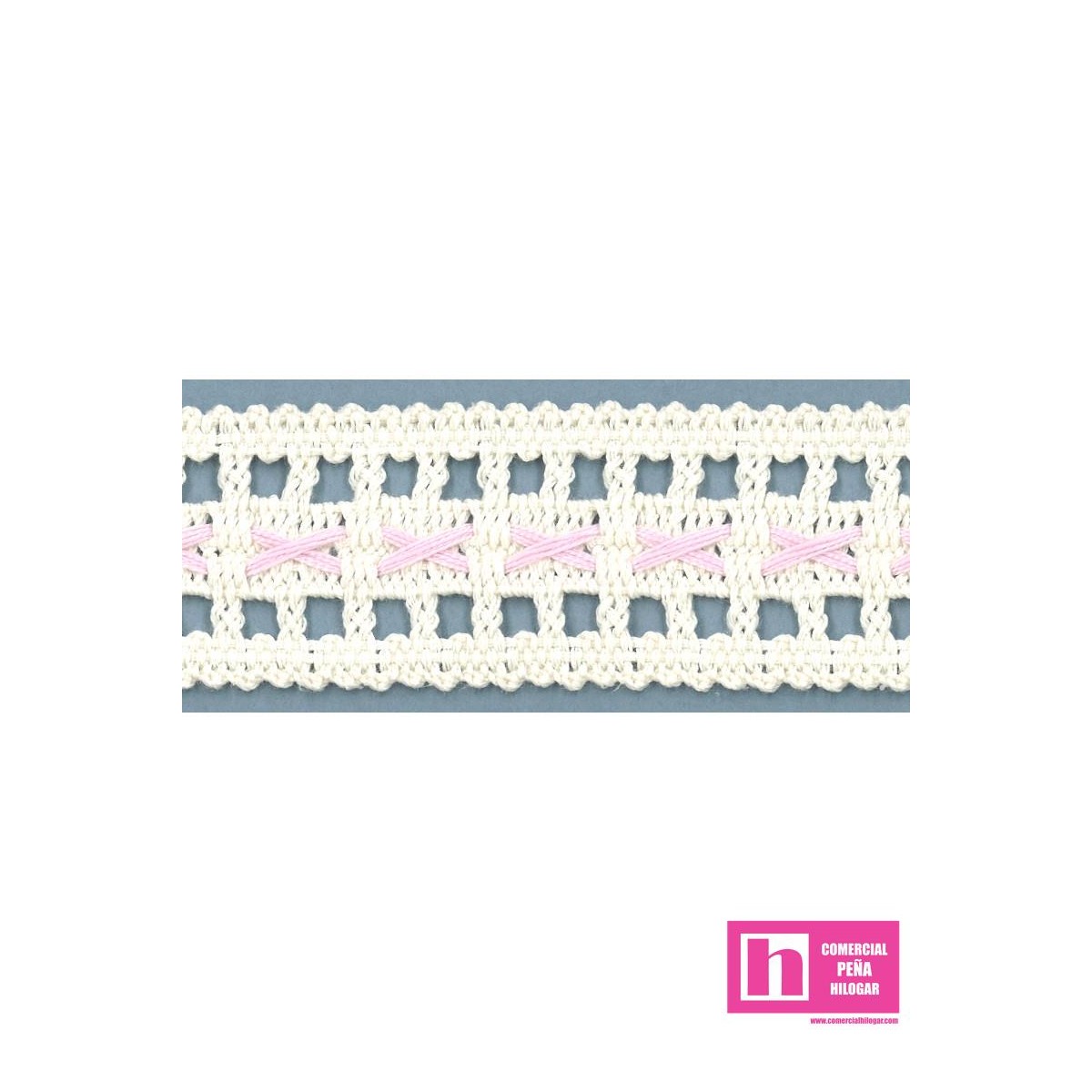 9607-5 ENTREDOS BOLILLO KAELA 30 MM. POLIESTER 100% MARFIL/ROSA Venta en piezas de 25.00 M